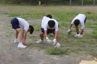 6月18日 今日は、放課後行う予定だった計画を変更して朝行いました。朝と言っても気温は高く、みんな汗だくになっていました。取り終えた後を見るととても気持ちがいいですね! よく頑張りました!! お疲れ様でした。