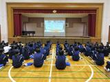 2月24日 今日は、放送委員会による生徒集会が行われました。放送委員の生徒たちは、時間をしっかり守ってもらうために、いつも早めに行動して準備を進めていることがわかりました。今回の集会では、早口言葉に挑戦するコーナーも行われ、各学年の代表者が放送委員の代表と対決しました。放送委員で話し合い、一番上手に言えた生徒を選び、みんなでたたえ合いました。楽しい企画に大いに盛り上がりました。また、給食の時間に流れる曲についても、生徒の皆さんからのリクエストがさらに増えていくと、より楽しい時間になりそうです。今後も放送委員会の活躍に期待しています。
